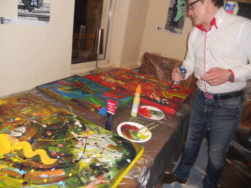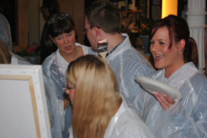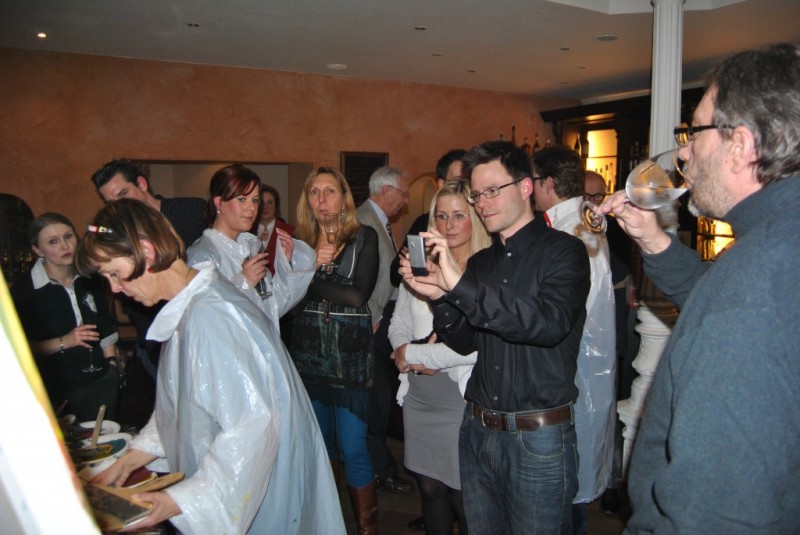 Liebe Frau Reinhart-Schäfer, es war rundum ein schöner Abend, und wir sind glücklich, dass unsere Wahl auf Sie gefallen ist! Wir haben die Bilder am Samstag abgeholt, haben sie in die Firma gebracht. Die Mitarbeiter konnten also Montag ihr Schaffen sehen. Alle fanden es ausnahmslos toll und endlich haben sie den Dank für ihre Arbeit auch gespürt. Das Teampainting ist soooooo gut angekommen, es ist unglaublich und wir können es nur empfehlen. Wie gesagt es war toll!!!!